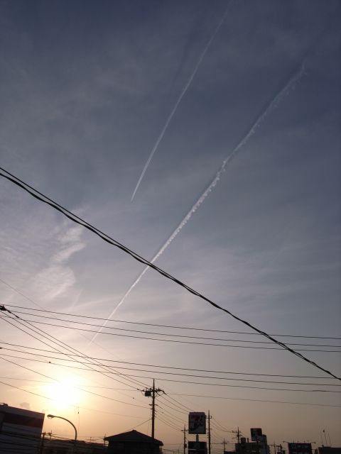 太陽を貫く飛行機雲
